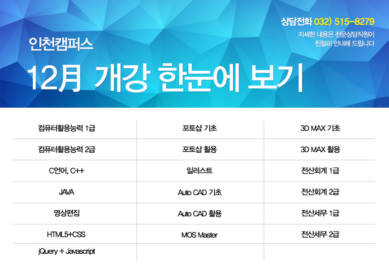 인천캠퍼스 12월 개강안내